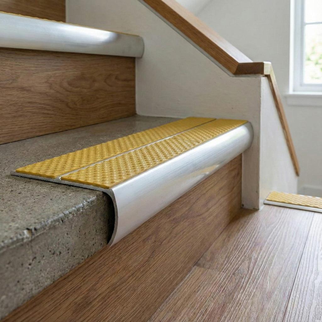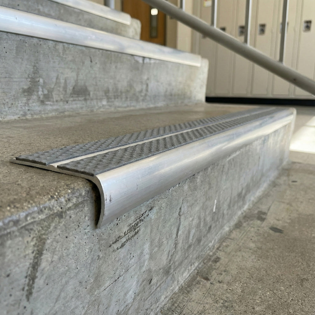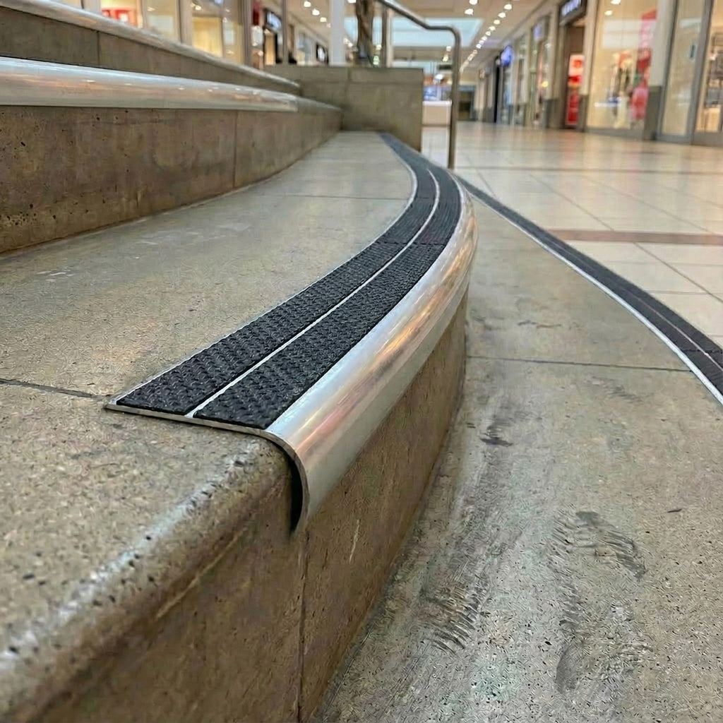 Our premium stair nosing system represents the gold standard in edge protection, offering superior slip resistance, exceptional durability, and compliance with UK Building Regulations. Whether you're upgrading an NHS facility, securing a university campus, or protecting warehouse stairs, this aluminium bullnose stair nosing UK solution delivers professional performance that stands the test of time.