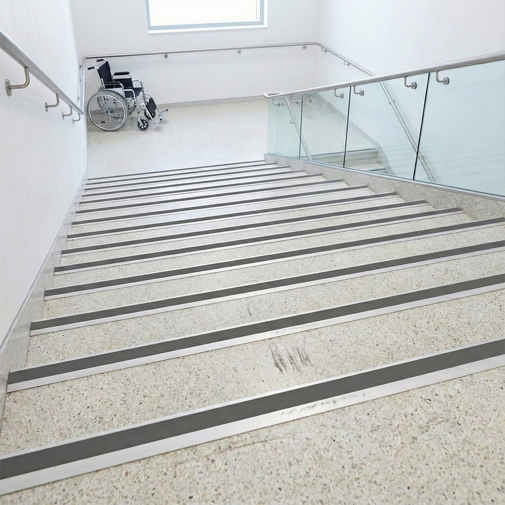 Healthcare & NHS Facilities: Hospitals, clinics, care homes, and medical centres across England, Scotland, Wales, and Northern Ireland requiring DDA-compliant, hygienic stair edge protection with superior slip resistance.
