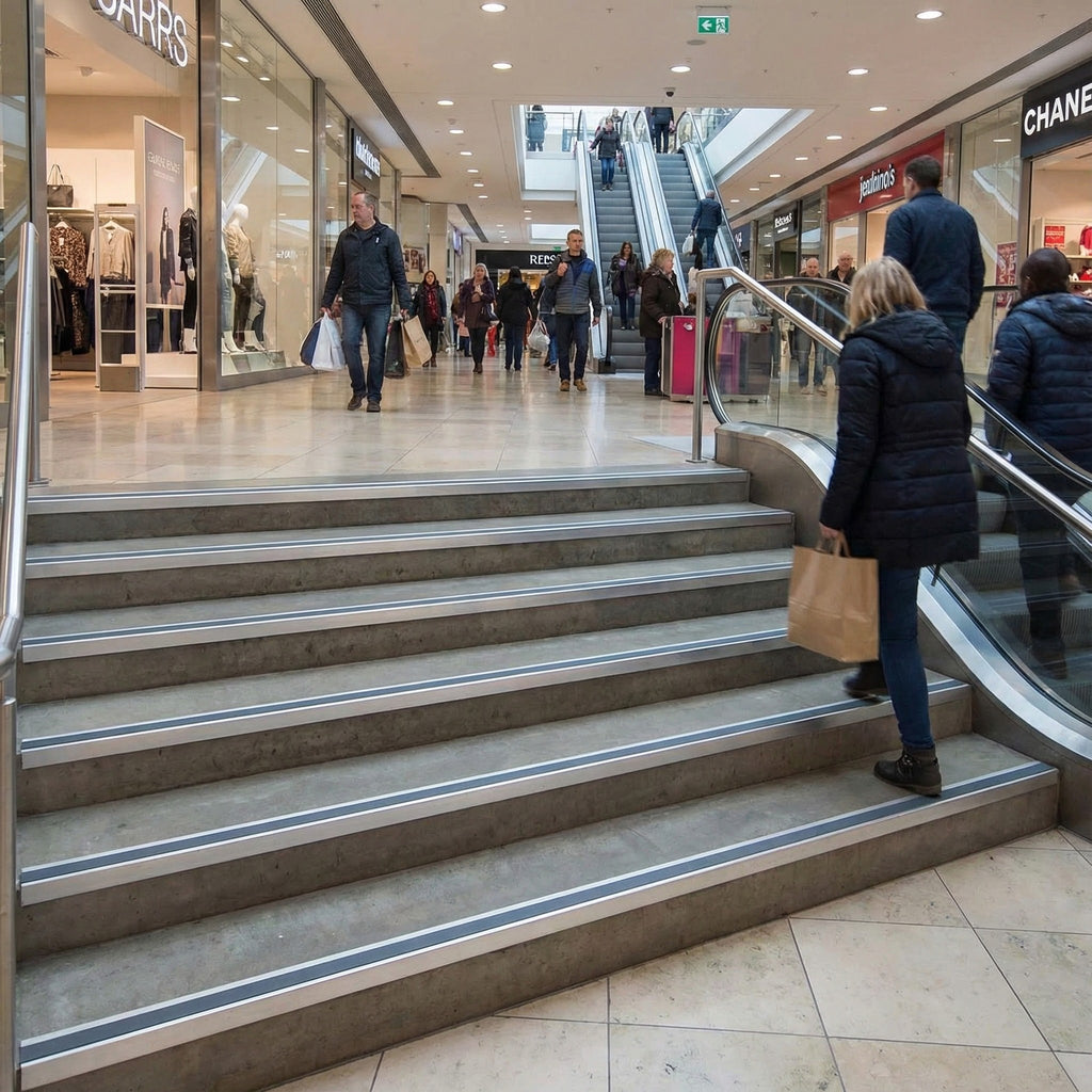 Retail & Hospitality: Shopping centres, hotels, restaurants, and entertainment venues across the UK requiring attractive, safe stair edge protection for public access areas.