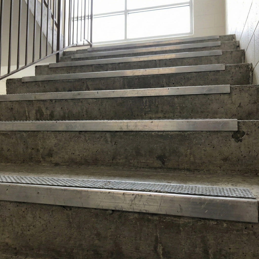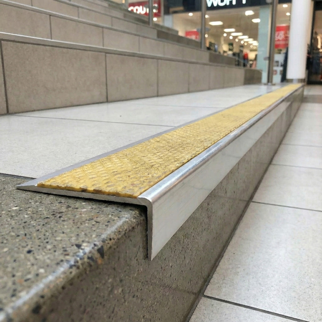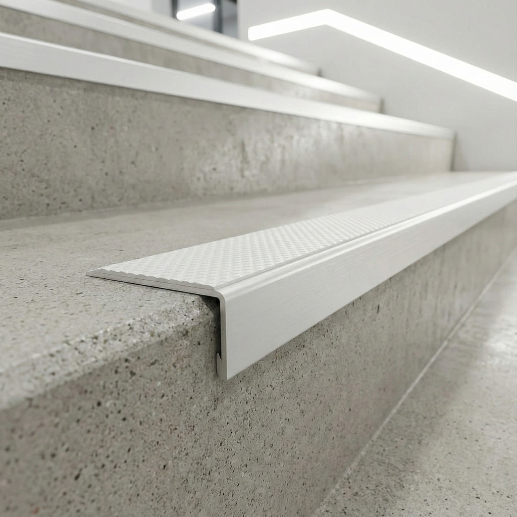 Industrial Facilities: Warehouses, manufacturing plants, and distribution centres depend on this robust aluminium edge trim to protect workers navigating staircases whilst carrying equipment or materials in demanding operational environments.