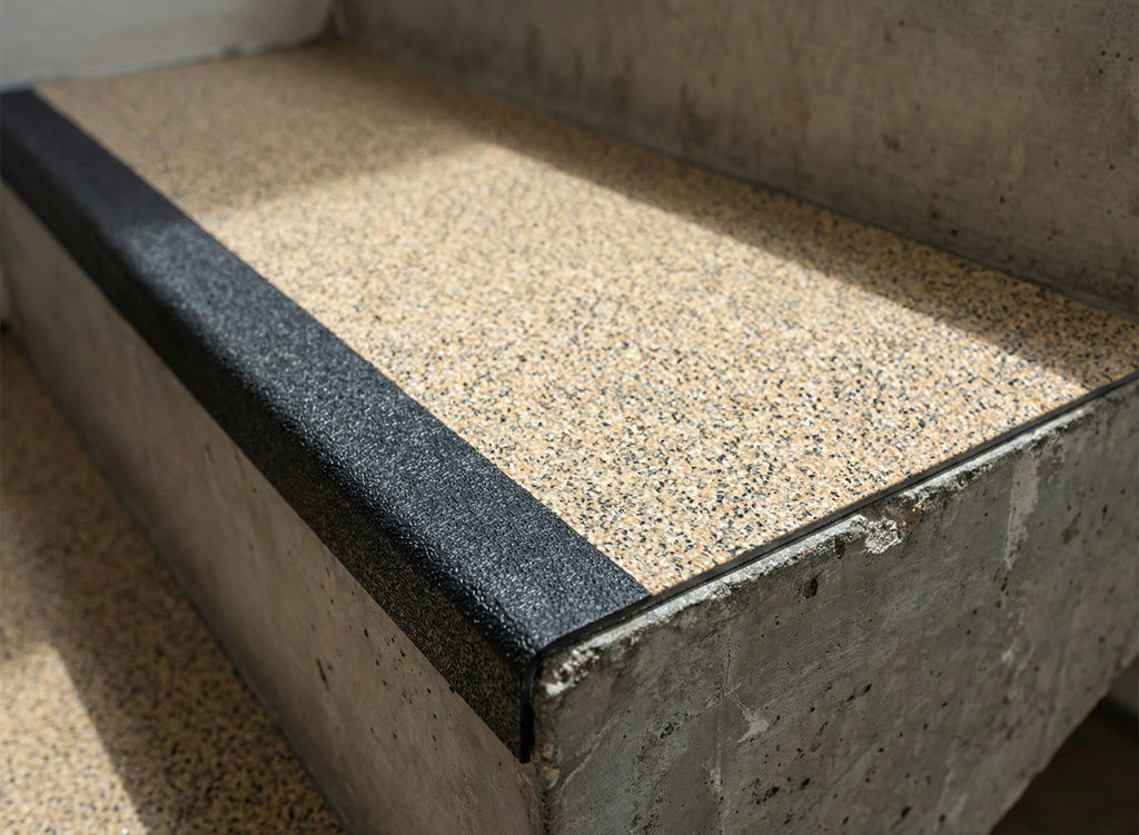 Our distinctive black safety nosing isn't merely aesthetic – it's a critical safety feature engineered to provide maximum visual contrast for step edge identification. This professional-grade design element significantly reduces trip and fall incidents, particularly in low-light conditions or for users with visual impairments, making it essential for compliance-focused UK facilities.
