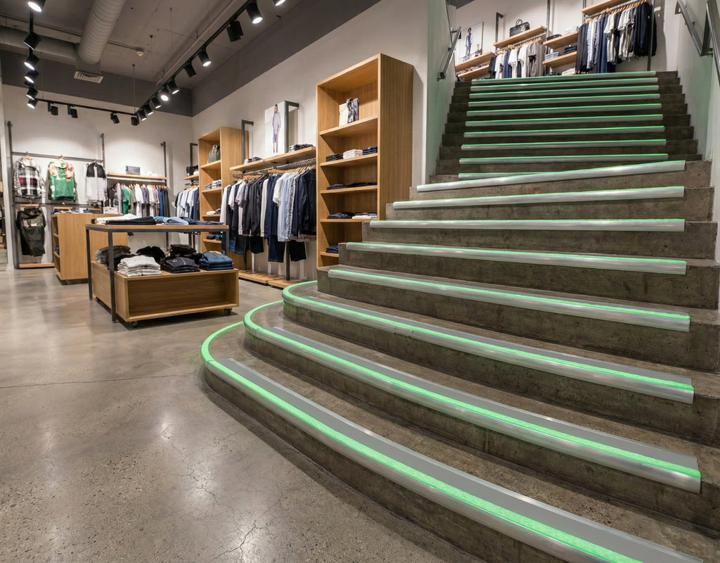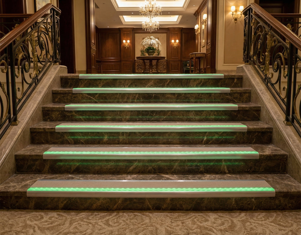 Apartment buildings, housing associations, and private residences enhance stairway safety with our professional-grade photoluminescent nosing. Particularly valuable in properties housing elderly residents or those with mobility challenges.