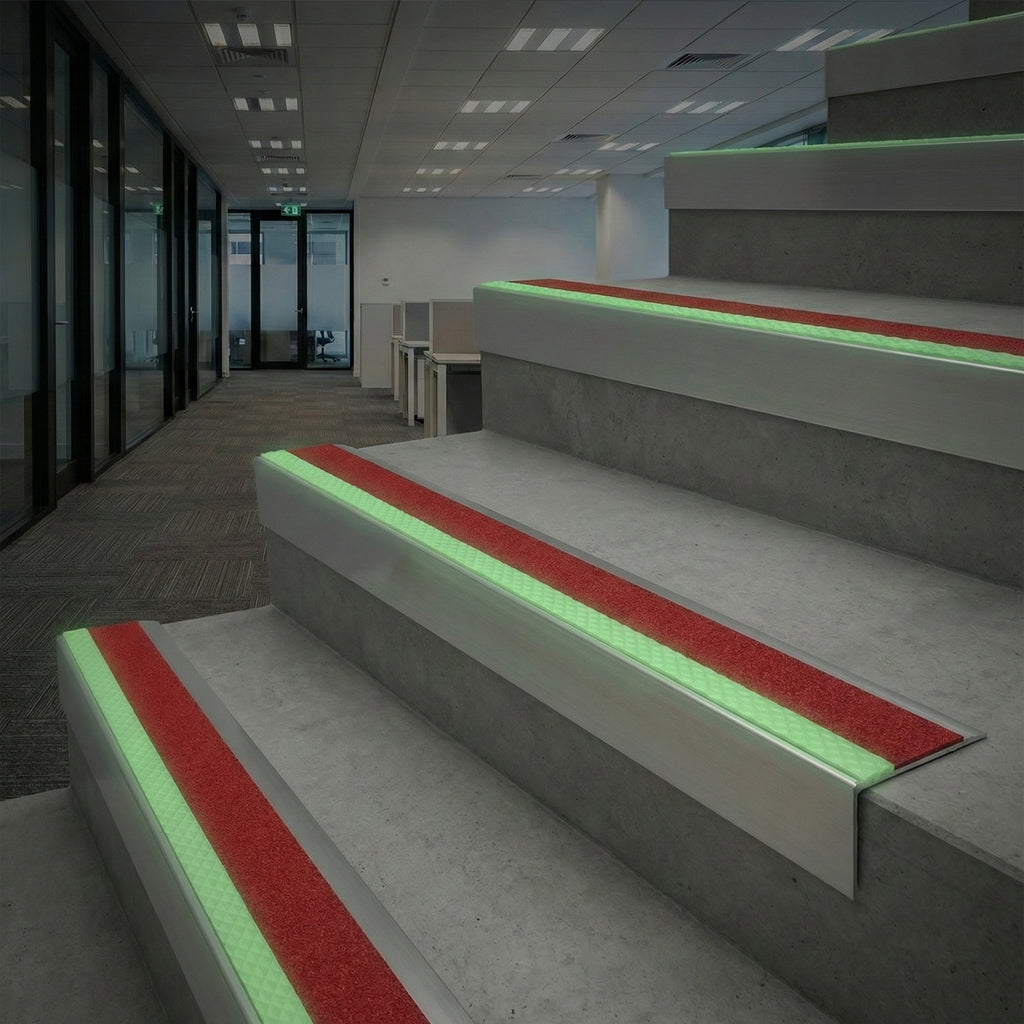 Absolutely. Our glow-in-the-dark stair nosing meets Approved Document M (Access to and use of buildings) and Approved Document K (Protection from falling) requirements. The high-contrast photoluminescent strip satisfies visual contrast requirements for partially sighted users, while the anti-slip surface meets slip resistance guidelines.