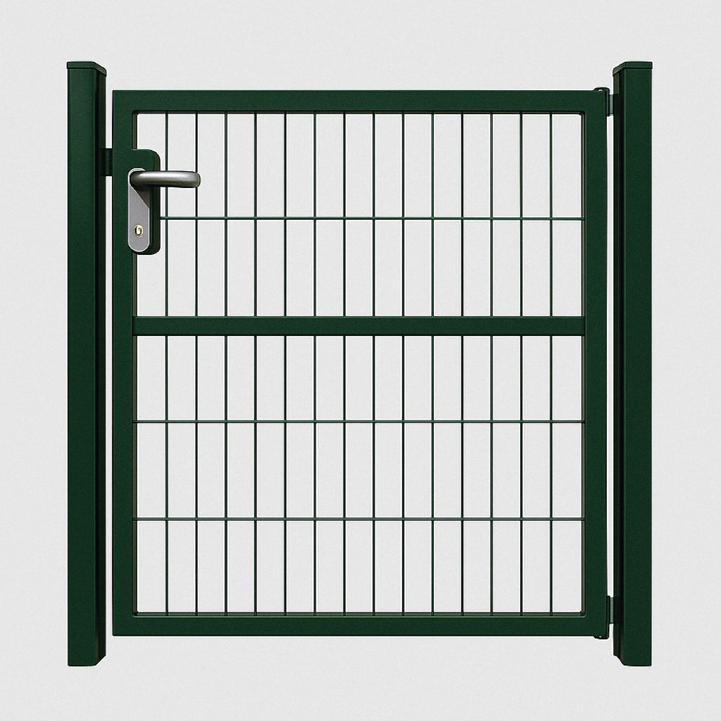 Durable green-coated steel gate for garden and fencing access points. Weather-resistant, easy to install, and matches standard fencing systems.