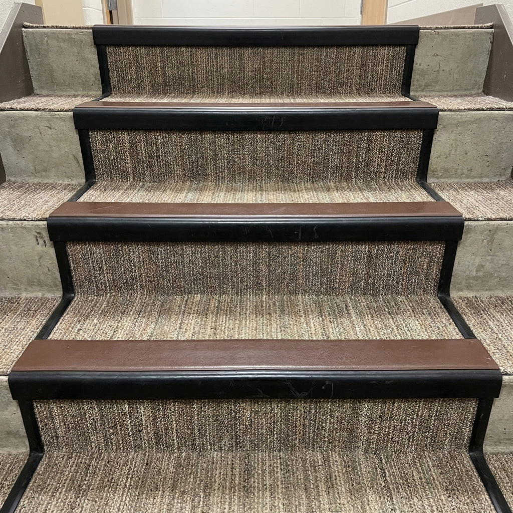 Schools, colleges, and universities throughout England, Scotland, Wales, and Northern Ireland protect their carpeted stairs with our heavy-duty solution. Withstands the demanding environment created by hundreds of students daily while maintaining safety standards and professional appearance.