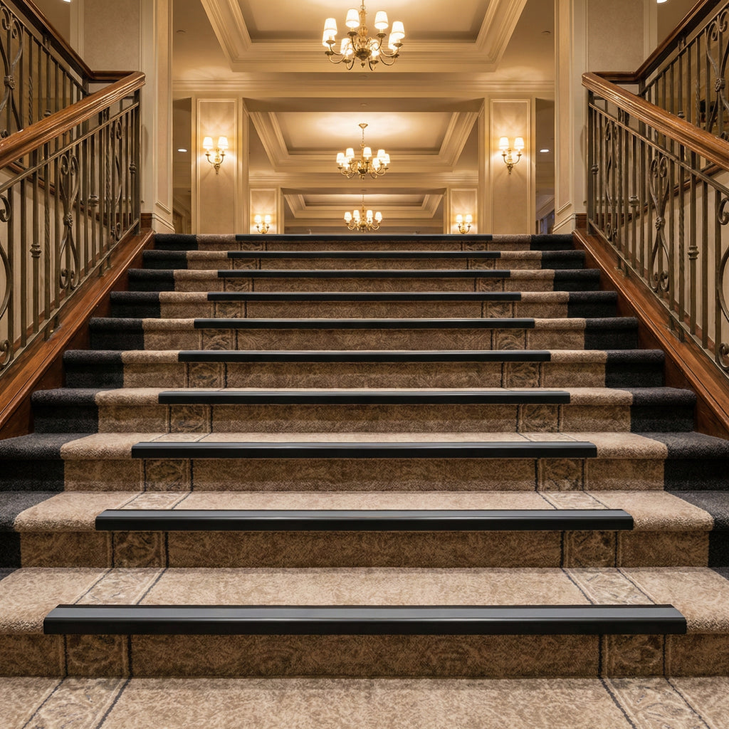 Shopping centres, hotels, restaurants, and entertainment venues benefit from the professional appearance and reliable performance of our stair nosing system. Maintains visual appeal while protecting against the wear patterns created by constant customer traffic.
