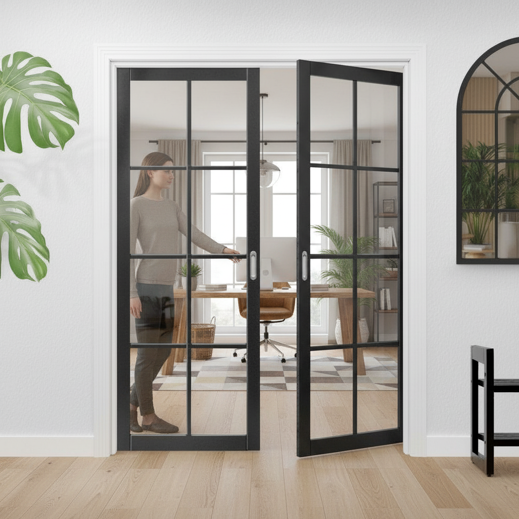 Industrial Studio 8 Light Glazed Pair Door - Fully Finish...