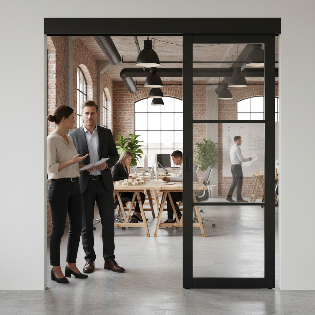 This thoughtful design consideration ensures that the Premium Internal Fully Finished Industrial Pocket Door Set is not only a stylish addition to your home but also a practical and accommodating choice for diverse needs, including wheelchair accessibility.