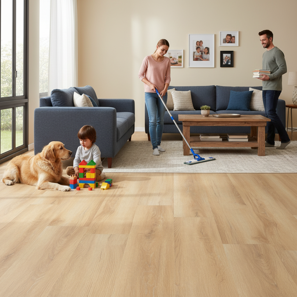 Regular sweeping and occasional damp mopping will keep your flooring looking great. -