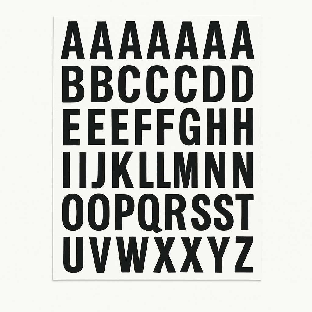 ✅ High-Impact Visibility – 23mm tall bold black letters on a crisp white background for ultimate clarity.✅ Flexible & Durable – Easily cut, bend and reposition without cracking or tearing. Built for repeated use.✅ Compact A5 Sheet – Easy to store, transport and apply in seconds.✅ Endless Applications – Ideal for retailers, offices, classrooms, workshops & more.✅ Custom Printing Available – Need specific letters or digits? We offer bespoke sheets (minimum 10 sheets/type).✅ Perfect for Professionals & DIYers – Clean, modern look that elevates any display.