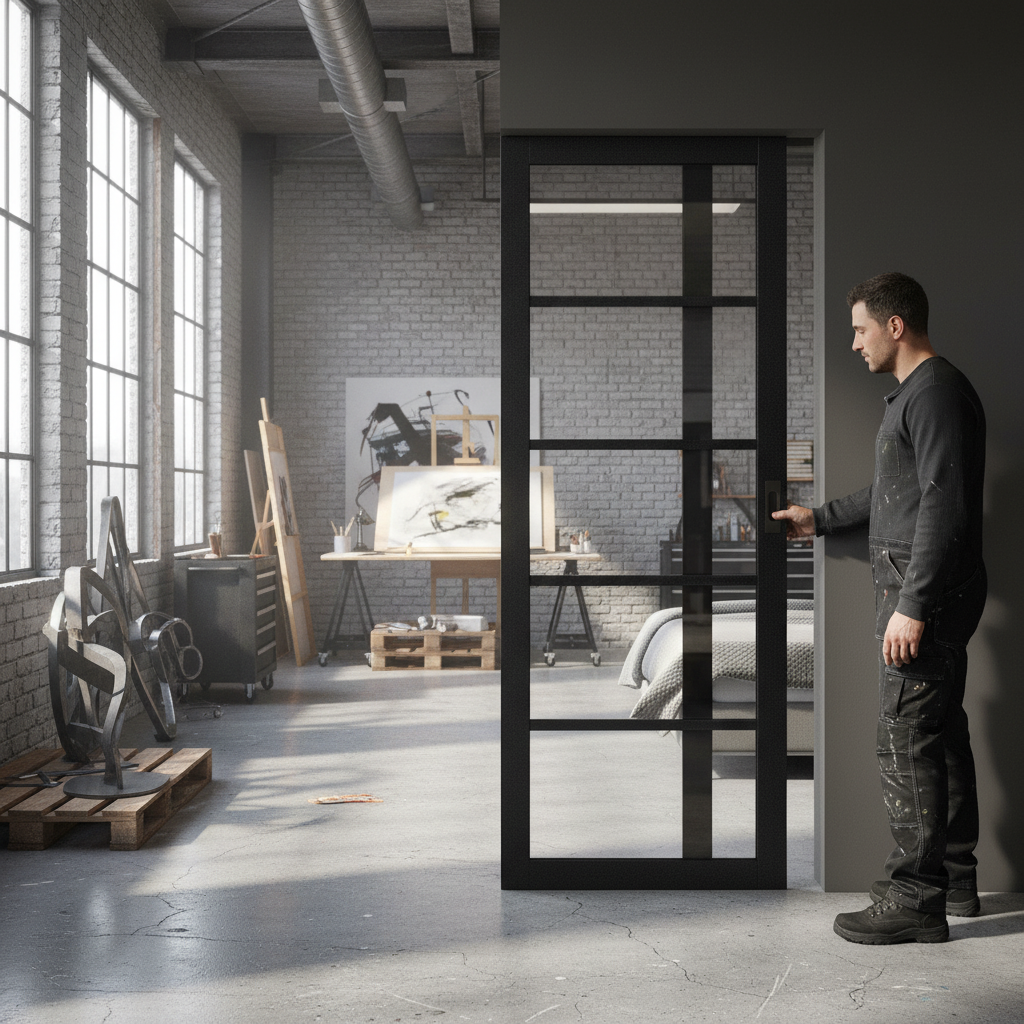 Introduce a touch of modern elegance into your home with the Premium Internal Fully Finished Industrial Studio 5 Light Clear Glass Pocket Door Set. Perfect for those who appreciate contemporary design, this pocket door set features a sleek black finish, accented by five panels of clear glass. The clear glass not only adds to the aesthetic appeal but also invites natural light into your space, creating a bright, welcoming atmosphere.