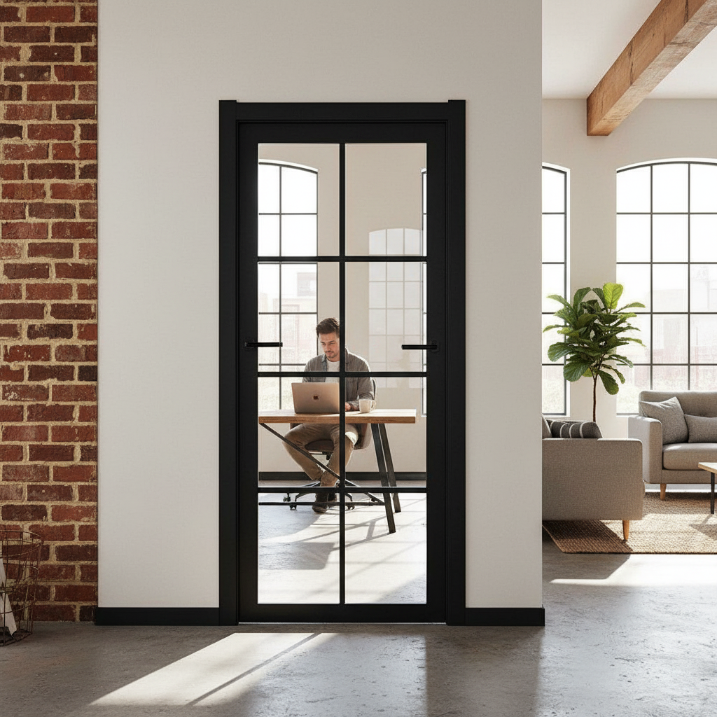 The Premium Internal Fully Finished 8 Light Clear Glass Industrial Studio Door is a perfect choice for homeowners seeking a stylish, light-enhancing, and durable solution for modern interiors. The toughened safety glass ensures safety while maximizing natural light, creating a bright and welcoming environment.