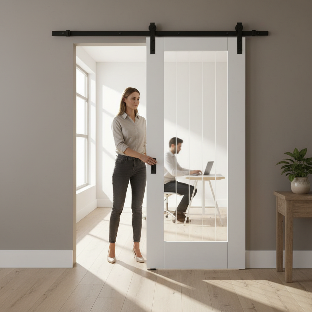 - Modern Sliding Track: Includes a durable black steel track for a smooth and stylish operation.