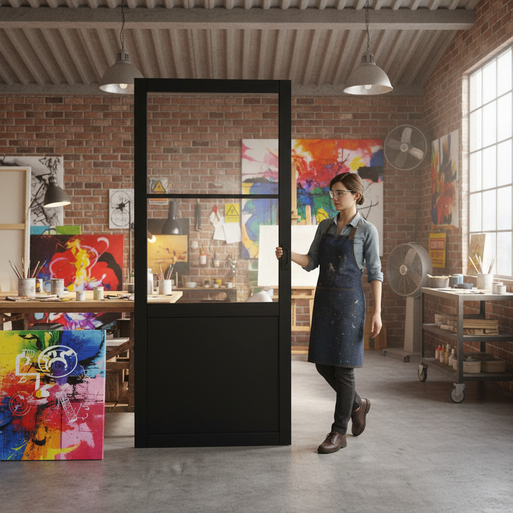 The Premium Internal Finished Industrial Studio Pocket Door Set is a striking addition to any modern home. Perfectly blending industrial charm with contemporary elegance, this pocket door set features a rich black finish, accented with two panels of clear glass. The unique design provides a balance of privacy and openness, allowing natural light to enhance the space while maintaining a sleek, sophisticated look.