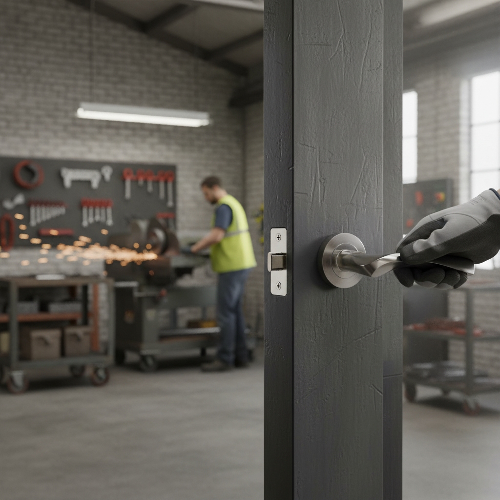 This handle set is designed for easy installation on internal doors. Ensure that the door is prepared with the appropriate mortice for the latch and hinges before installation.