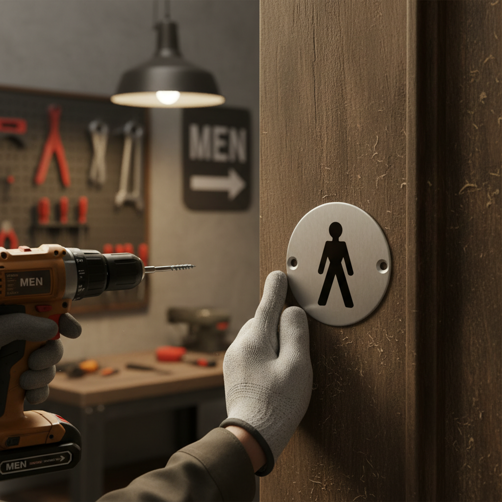 Premium Male Symbol in Satin Stainless or Bright Stainless Steel Finish with Screws, Ideal for Commercial Projects