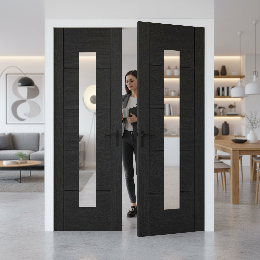 Internal Black Finished Oak Door Pair with Clear Glass Li...