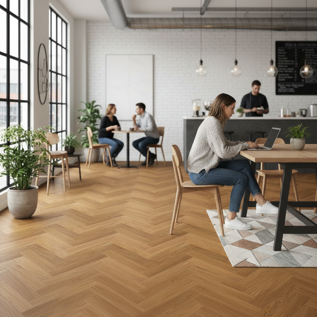 The 4V bevelled edge and tongue and groove installation system create a seamless, high-end look that works beautifully in both traditional and modern interiors. Compatible with underfloor heating up to 26°C, it offers warmth, comfort, and long-lasting performance.