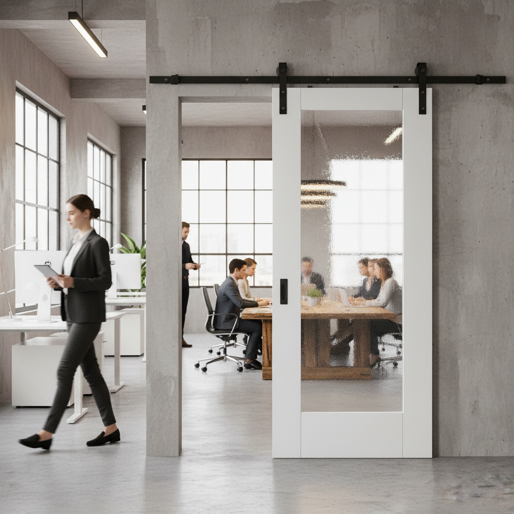 - Smooth Integration: Enhanced with a rigid black steel sliding door track intended for overhead installation, facilitating smooth transitions along with space-saving functionality.