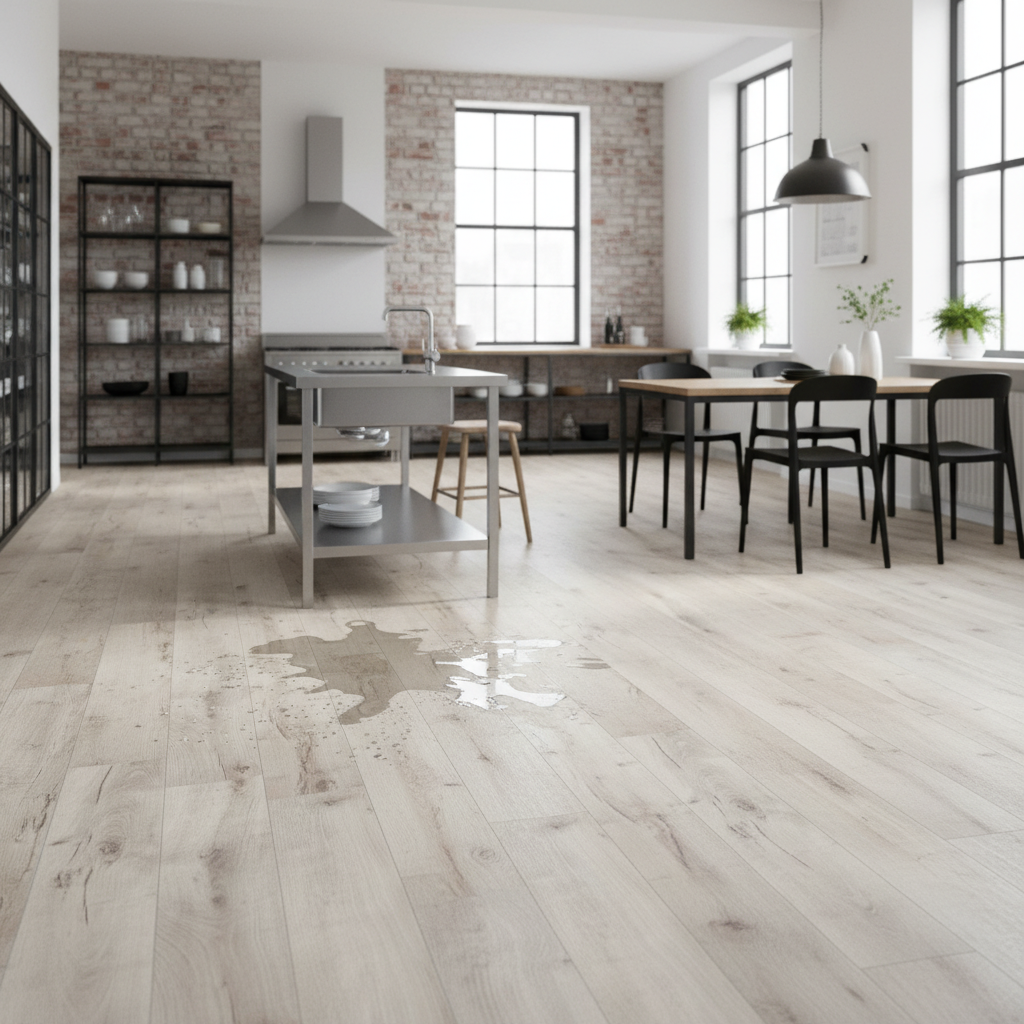 The laminate flooring collection offers exceptional water resistance, protecting against spills for up to 24 hours, making it a suitable choice for kitchens, bathrooms, and humid environments. It is manufactured with a water-resistant surface that provides added protection from moisture ingress.