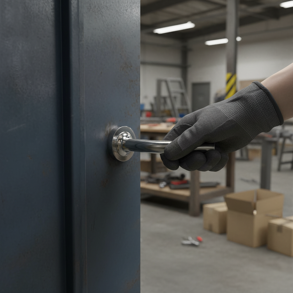 - What is the finish of the door handle? The handle features a sleek satin chrome finish.