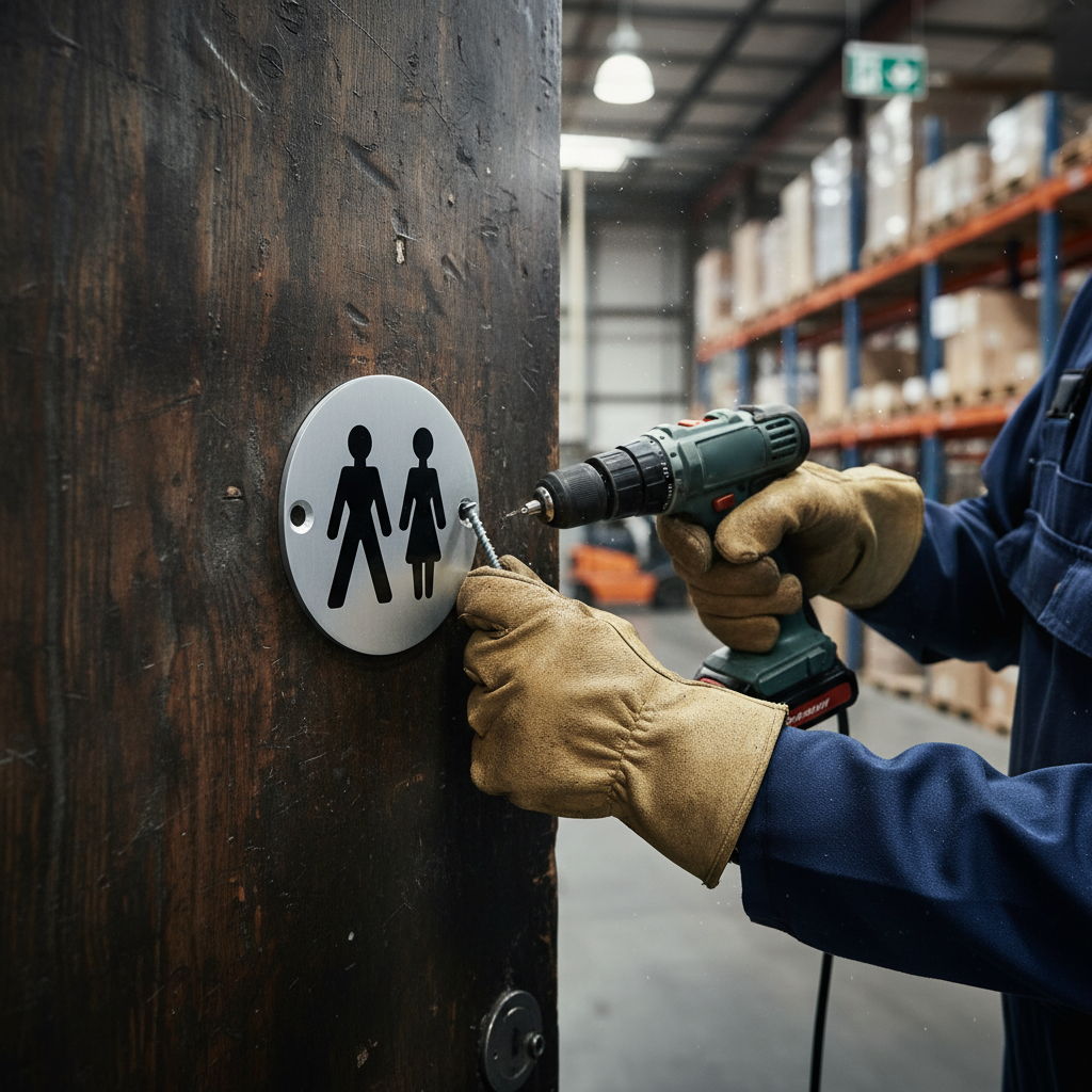 Premium Unisex Symbol in Satin and Bright Stainless Steel Finish with Screws for Commercial Projects