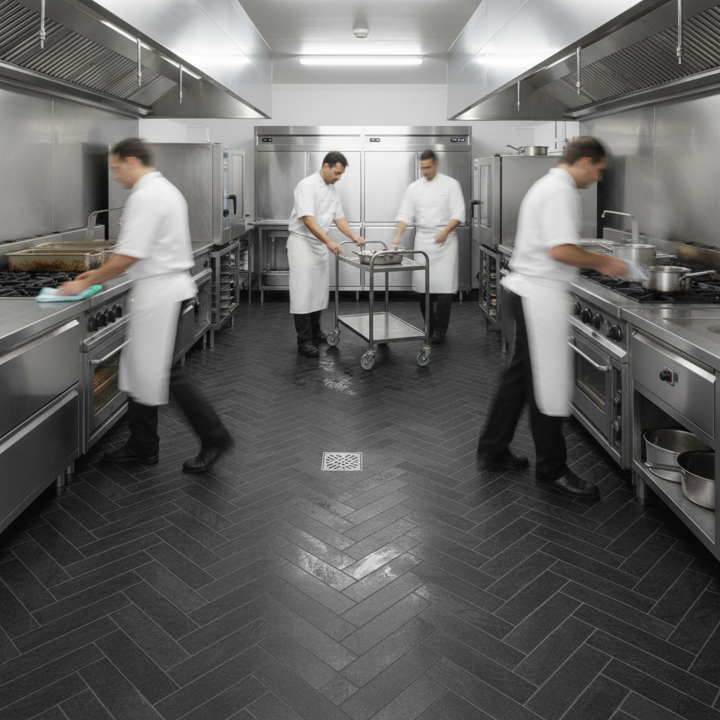 Premium Water-Resistant 8mm Ultra Matt Laminate Flooring - Black Herringbone Design with Click System for Home and Commercial Use