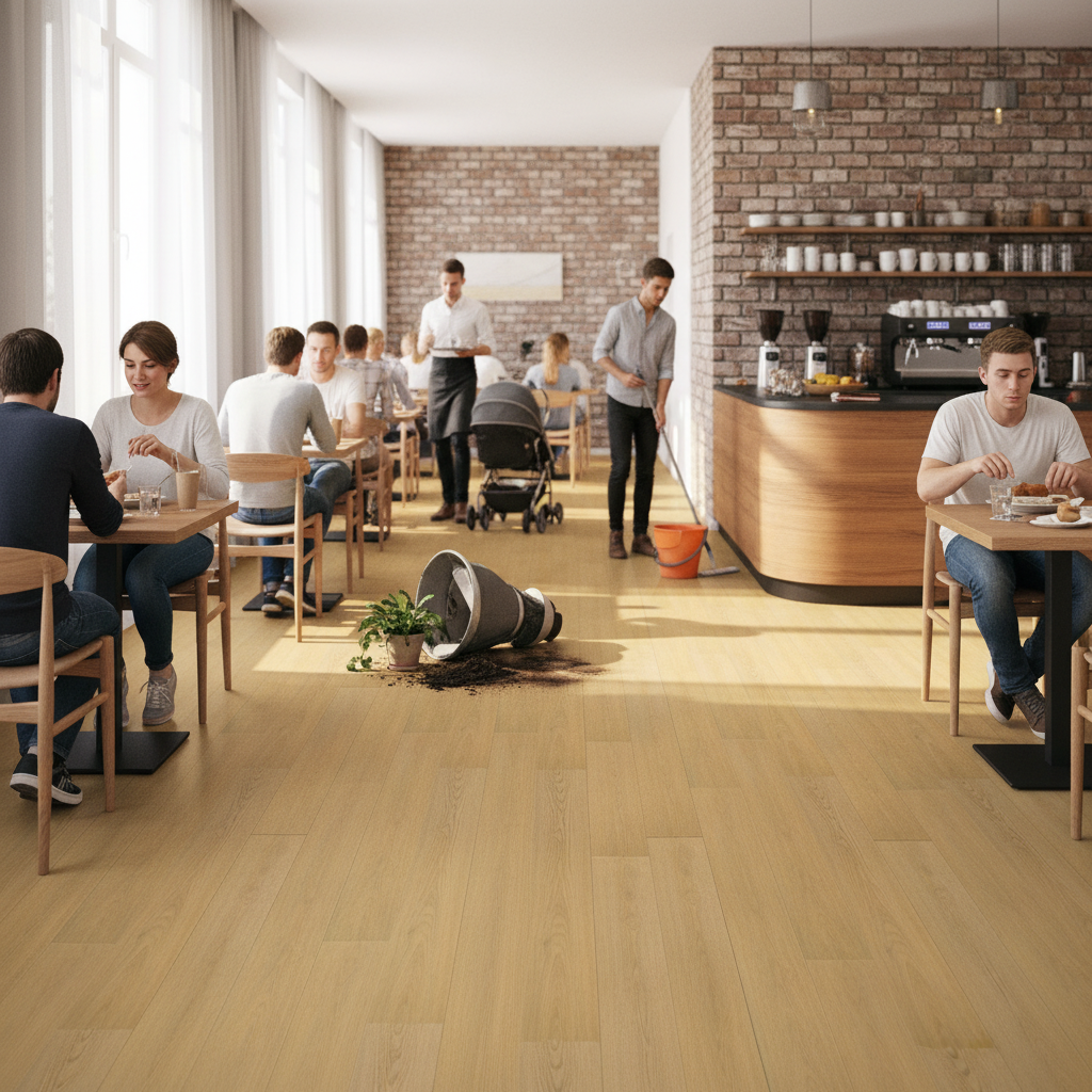 This laminate flooring not only enhances the aesthetics of any room but also provides the practicality needed for high-traffic and moisture-prone areas. Its water-resistant feature ensures that spills and humidity will not damage the floor, making it a perfect choice for kitchens, bathrooms, and entryways.