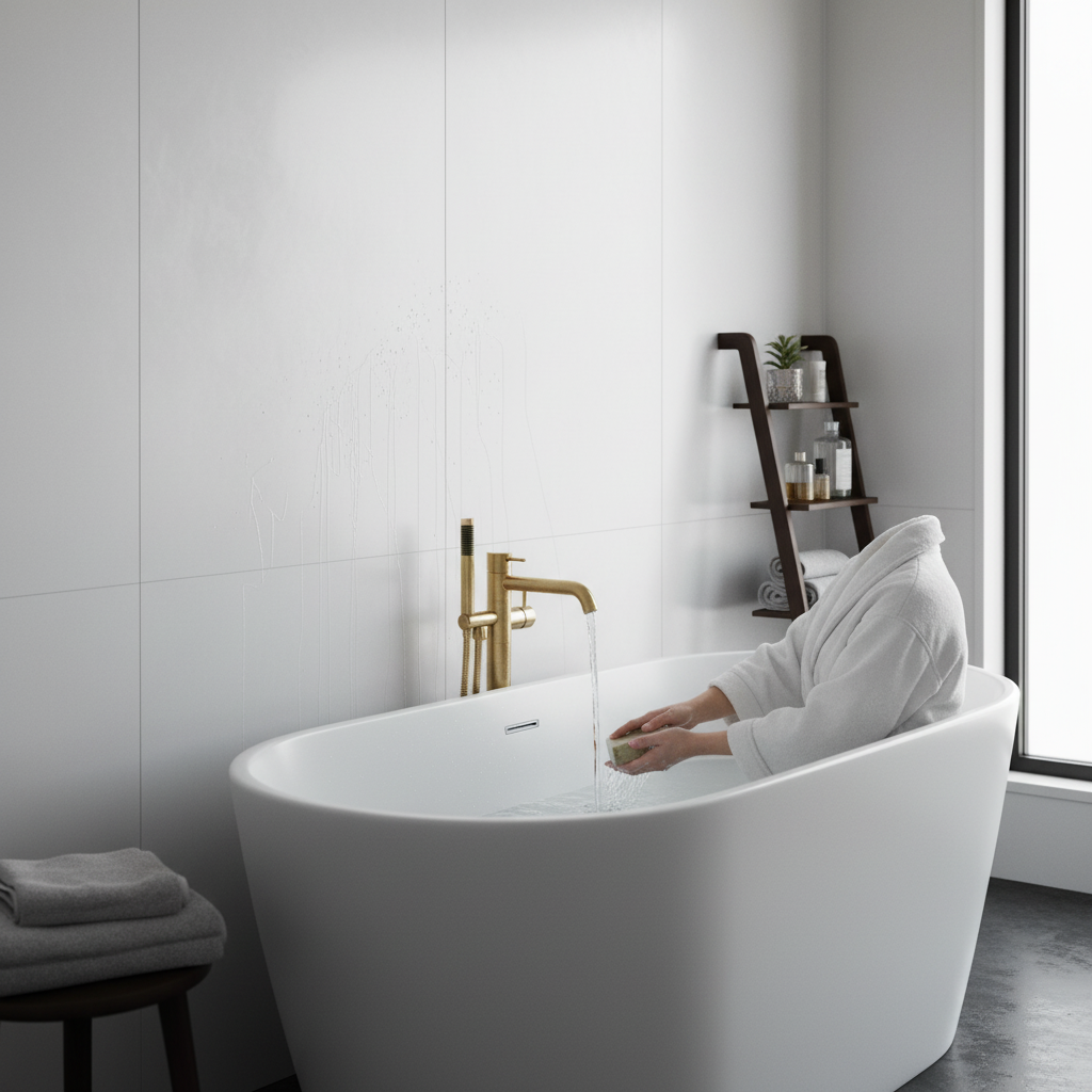 Bring a sleek, contemporary feel to your home with Premium Waterproof Wall Panelling. Designed to replicate the refined beauty of natural stone, its soft matt finish and subtle texture create a modern, minimalist aesthetic that suits any space.