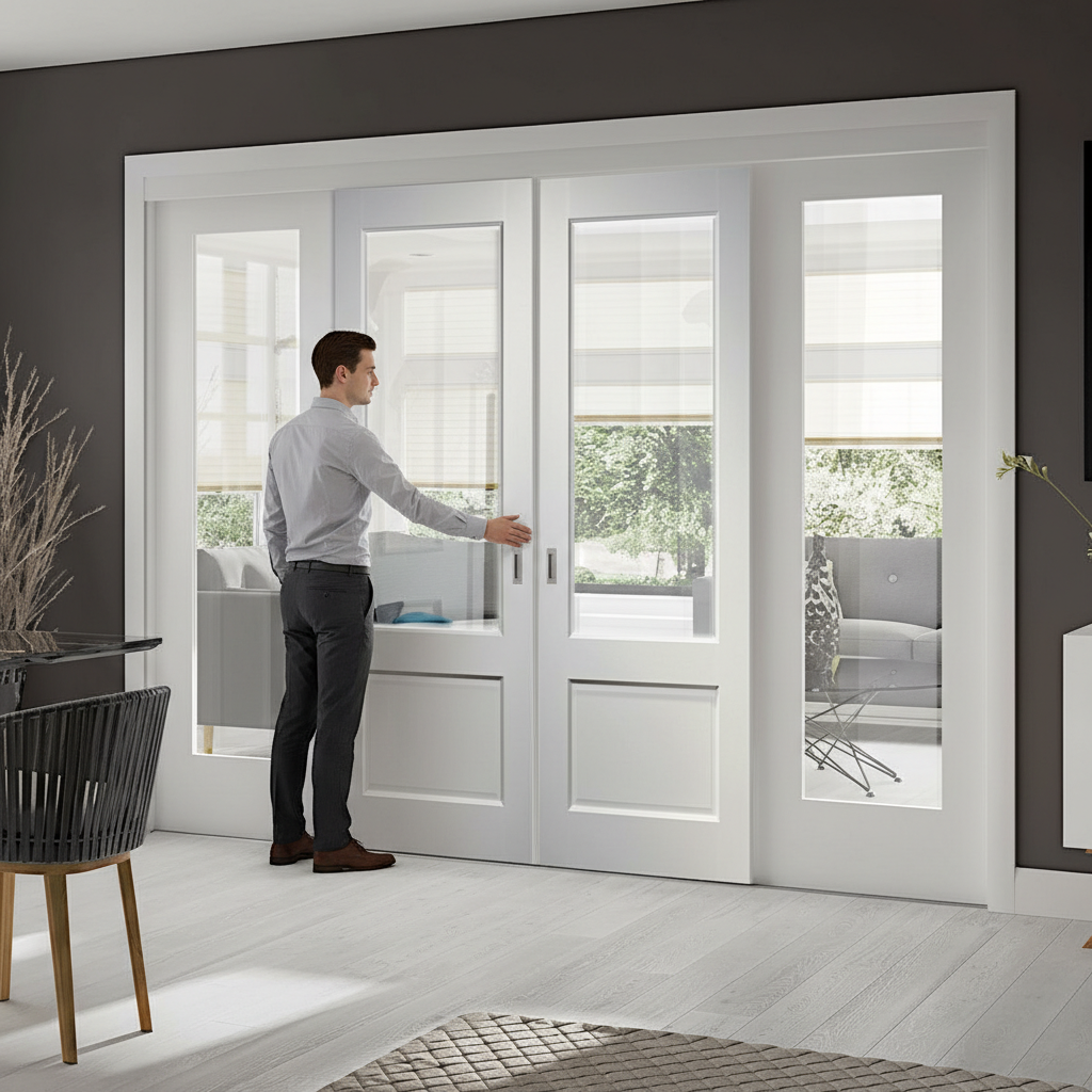 Premium White Glazed Room Divider with Side Panels for Elegant Space Transformation