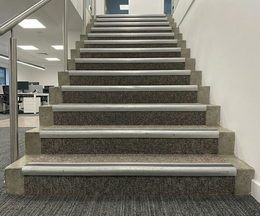 Commercial Properties: Office buildings, retail centres, and hospitality venues throughout the UK utilize our aluminium nosing to reduce liability exposure whilst enhancing professional aesthetics.