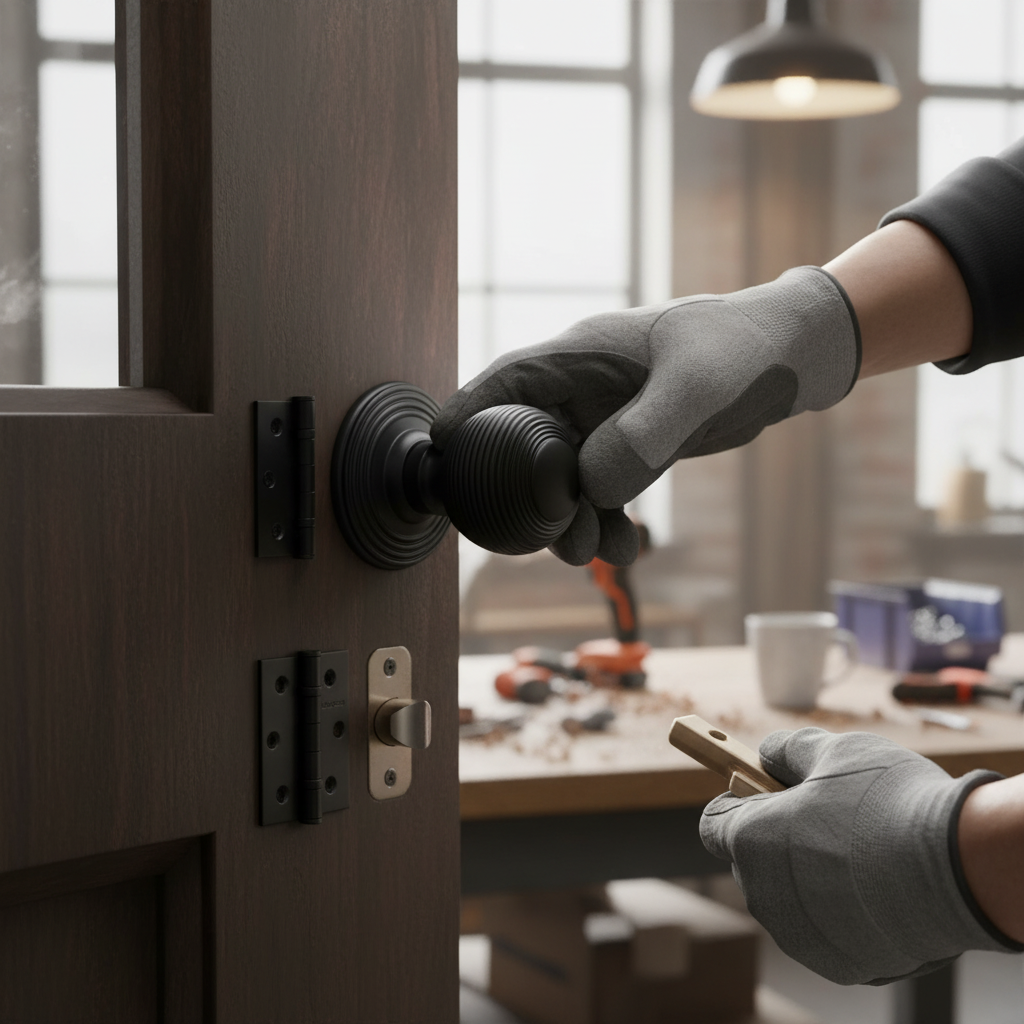 Step up your home's style game with the Premium Round Reeded Mortice Knob Set in a chic matt black finish. This set is the secret ingredient to giving your doors that Instagram-worthy look. With a simple twist of these beautifully crafted knobs, you'll feel the difference that quality makes. This complete kit includes everything you need for an instant door makeover: stylish knobs, smooth hinges, and a latch.