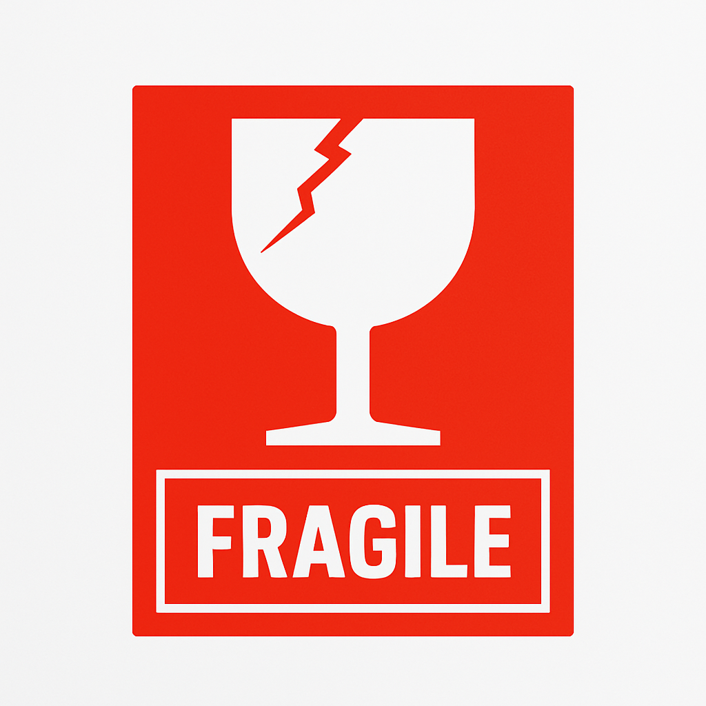 🔴 Bold, High-Impact DesignCommand attention with bright red & white print and a universally recognized broken glass icon—instantly understood by carriers worldwide.