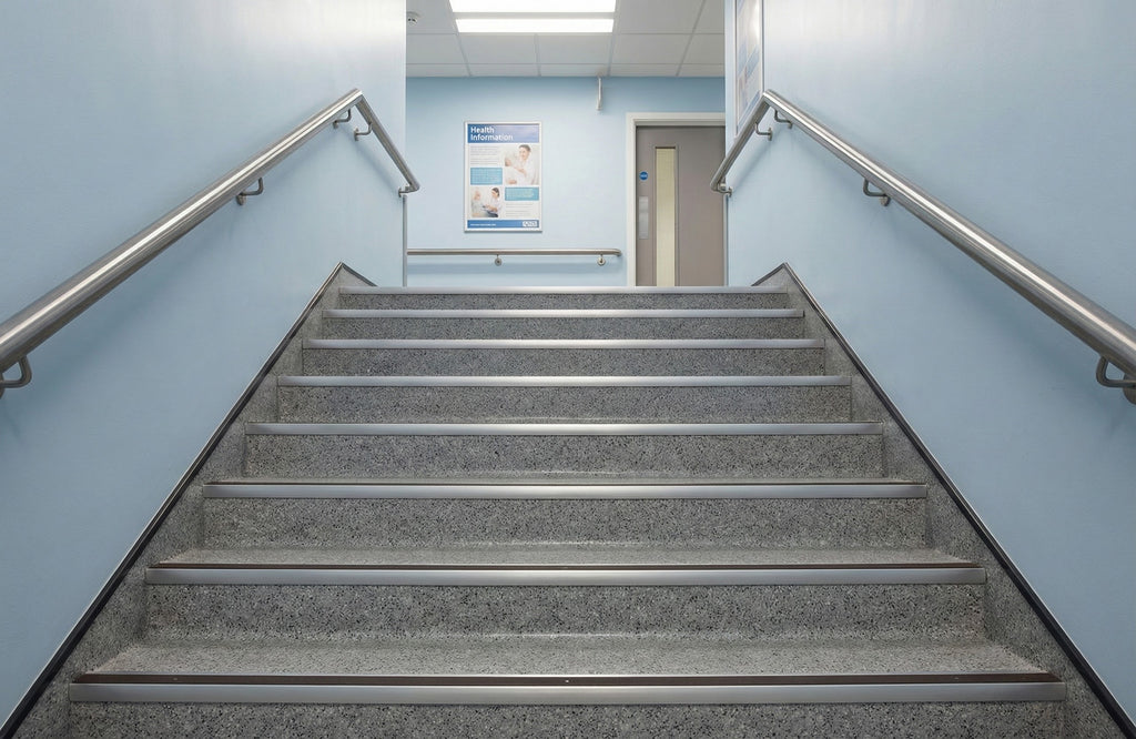 Hospitals, clinics, care homes, and medical centres across England, Scotland, Wales, and Northern Ireland rely on this professional stair nosing to protect vulnerable patients and busy staff. The wheelchair-accessible ramp profile and anti-slip surface meet stringent healthcare safety standards.