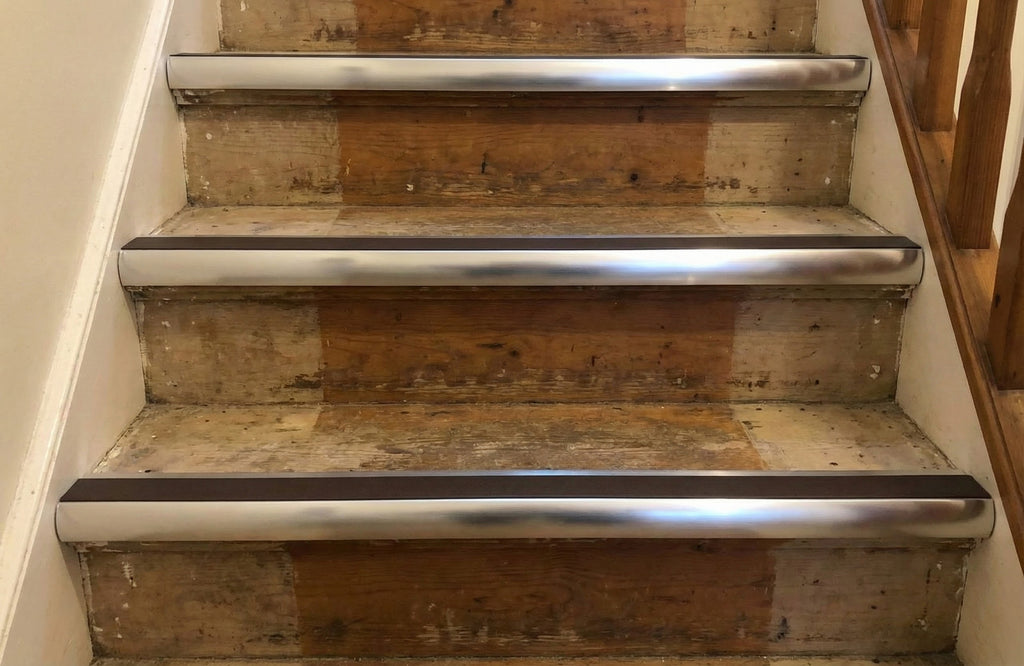 Inspect the nosing quarterly for secure fixing, PVC insert condition, and any signs of damage. Check that all screws remain tight and the nosing maintains full contact with the stair edge. Address any issues promptly to maintain safety standards.