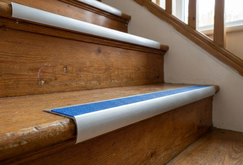 Premium Anti-Slip Stair Nosing UK – Heavy-Duty Aluminium Ramp Profile with PVC Insert